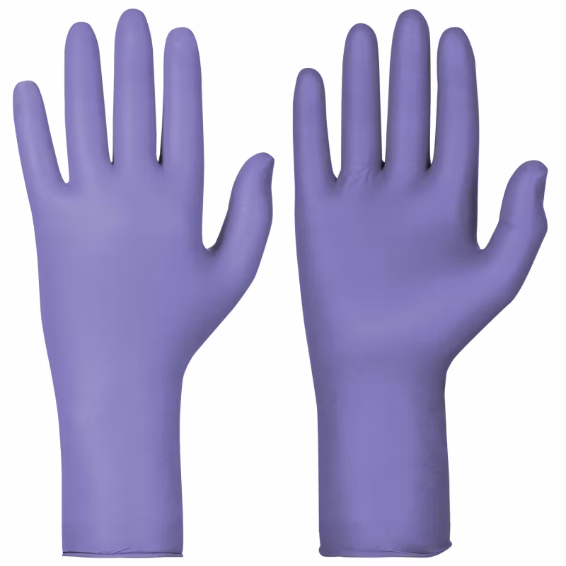 Nitril, pudderfri. Indigo farge. 28.5 cm lengde.