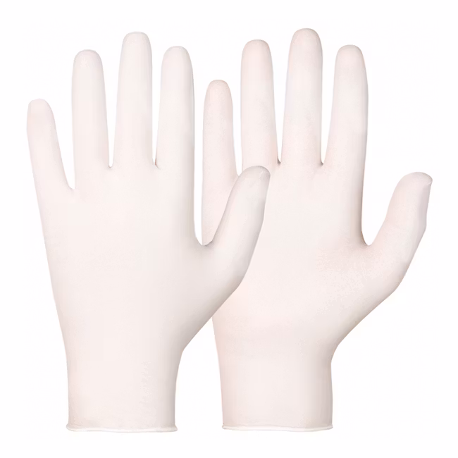 Vinyl/PVC, Pudderfrie. Klar farge. Leveres i pappdispenser med 100 stk.